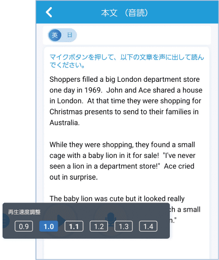 教科書本文を音読すると,生徒の音声を分析し評定します。
