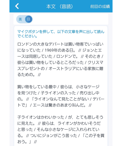 3ステップで, 本文を読んだ音声を自動採点し, フィードバックします。
