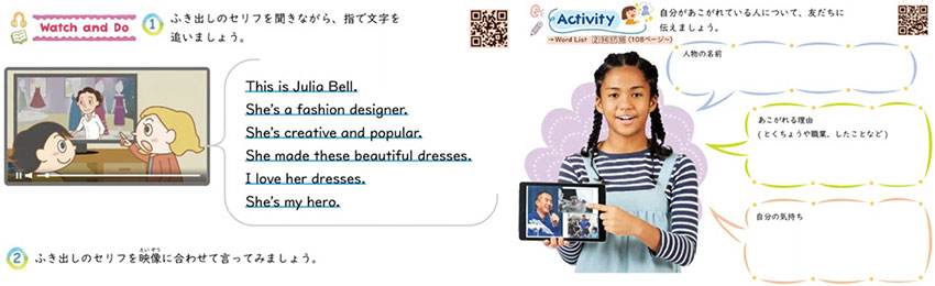 この4ステップは、教科書の構成を基本としながら、段階的に活動を展開できるよう設計している。年間を通して「相手意識をもってコミュニケーションをとる」ことを目標として据え、単元ごとにスピーチやポスター、ALTとの会話活動等でゴールを設定していくことがポイントである。単元ごとにゴールが変わると子どもの活動への意欲はそがれずに、楽しみながらも段階的にコミュニケーション力の育成へとつながっていく。