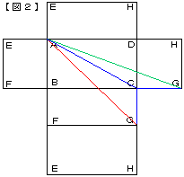| 1) | グループごとに,箱,ひも,定規を使って,A,Gを結ぶ最も短い長さを考え,それを実測する。