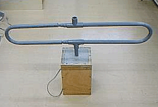そこで,クラスの生徒全員が干渉を聞ける大型のクインケ管と密閉音源を自作して授業で活用している.クインケ管の製作にあたっては,茨城県立境高校の岡野道也先生に助言をいただいた.写真は平成3年度から授業で使ってきた装置である.下部の立方体が密閉音源である.