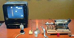 輝線スペクトルはスペクトル管やナトリウムの炎色反応,あるいは蛍光灯の光のなかで観察でき,そう珍しいものではない.しかし,輝線と同じ波長の光を吸収することは,不思議に満ちた現象であるように思う.写真のような装置を使って,クラスの生徒全員に見せることができるようになった.
