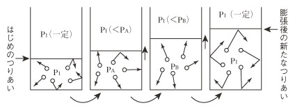 初めの圧力の釣り合いがやぶれて「膨脹」