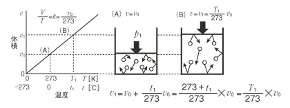 (A) の絶対温度を2倍にすると (B) の体積が (A) の2倍となるのは