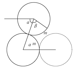 転がった弧の長さを m 、転がった外接円、固定円の角度を β、α とすると、