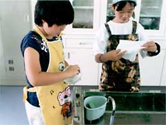 ・ | 調理をしている時は,グループで協力して料理を作り,燃えるゴミと燃えないゴミ,空き缶・空き瓶などを分別して捨てることができた。 |