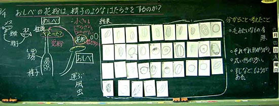 | 5年「花から実へ」 ↑いろいろな花の花粉の形から問題を解決する。 |