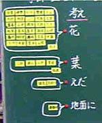 ここ3年間,自分でかいてきた板書を見直してみたが,有田和正氏の板書と較べてみると,まだまだだなあと思う。有田氏の考えられた割付,大胆な掲示物,そして美しさ…。ため息が出るばかりである。さぞ,子どもたちは楽しい授業をしたのであろう。