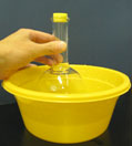お湯の温度は60℃程度でもよい (百円ショップで売っているゴム手袋があればもう少し温度を上げても大丈夫) |