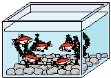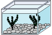 | 1) | 水槽の絵(水草なども入れた写実的なもの)を提示する。