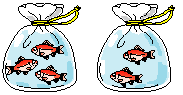 4) | 金魚を水槽に入れる(パッと裏返しにして逆さの袋を提示)。