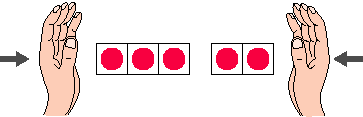 また,合併・増加それぞれの違いが明確になるような言葉やお話を,子どもたち自身に創造させる。 |