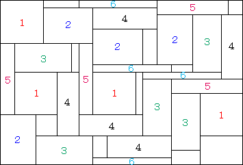 | すき間の部分も任意単位の考えのもととして後の時間に十分活用できると願った教師の意見に反して,子どもたちは全く使おうとしなかった。しかし,四角形が6種類あると発見すると,子どもたちはそれぞれを区別するために番号をつけた。 |