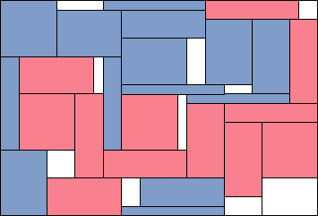 最初は,2人ペアで自由に相手を決め,じゃんけんで勝った(選ぶ優先権が与えられる方から先に一番広いと思う一区画を自分の色で塗りつぶした。勝ったものだけ塗ると全然塗れない者がでるかもしれないといった子どもたちの考えから負けた者も必ず一区画塗った。教師側からの約束は,できるだけ自分の陣地を広げるために最初は隣り合った所から取っていくことを提案した。しかし,最終的には隣り合わない陣地ができても良しとした。