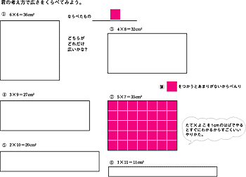 | | 第2次 広さを比べよう「敷き詰め」(6時間)