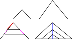 2倍,3倍の図形を基本図形の2つ分,3つ分と表すことが可能で,視覚的にも量的にも依存関係や比例関係がとらえやすい。 |
