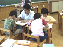 子どもたちは一応の解決が終わると,個々に相互交流しながら解決方法や結果の検討を行う。その間,教師は,解決に困っている子どもに対してきめ細かな個別指導を行うことができる。この場面において,「もし, (分子が同じ) , , の分数だったら大きさはどうだろう。」といった子どもたちの興味・関心の方向としての発展的な学習が導かれ,問題意識となり,話し合われることとなった。