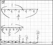 , , の分数の大きさを線分図や数直線などに表して,くらべ方を考えよう。(説明しよう)