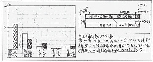 | 全体の量が違っても成分のちがいを比べられるグラフはどんなグラフか考えよう。 |