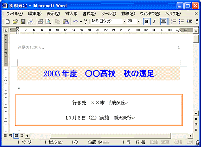 | 1.文字または段落を選択して,メニューバーの[罫線]から[線種とページ罫線と網かけの設定]をクリックする。 |