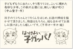 「女の子はすもう大会に出てはいけない」というルールに納得できない双子の姉のリコ。ガンコじいさんの反対にもめげず、奮闘するリコの前に奇妙な男の子があらわれて…。