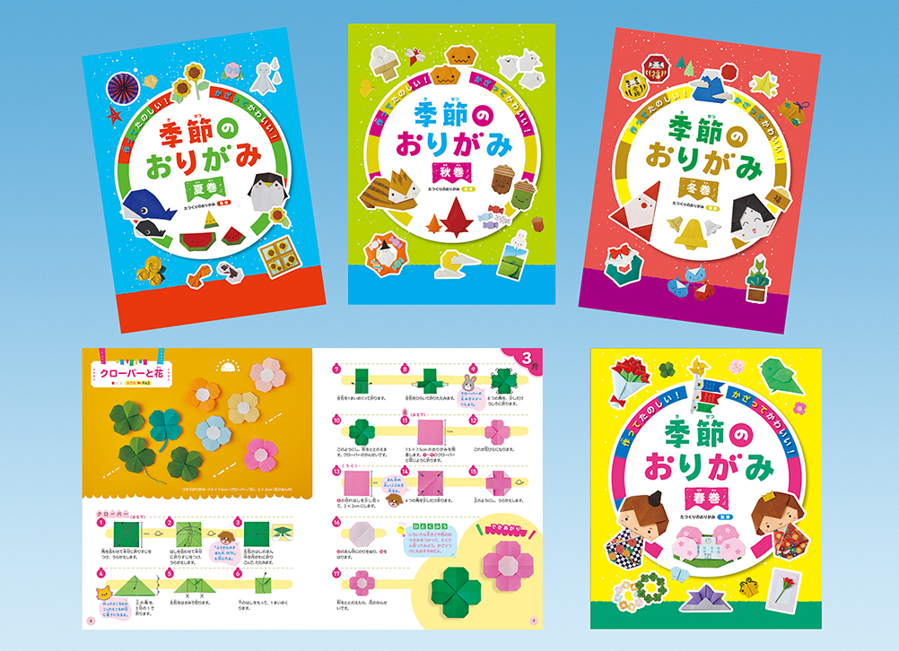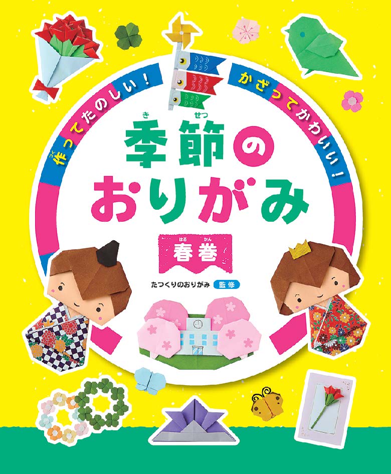 このシリーズでは、「たつくりのおりがみ」オリジナルのおりがみ作品を季節ごとに紹介します。巻末では作った作品をかざりにするアイデアも掲載!折って楽しんで、かわいいかざりが作れます。