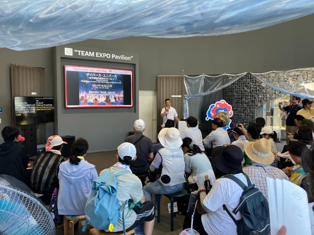 ダイバース・ユニバースの展示エリアは、西ゲートからさらに歩くこと15分ほどの「フューチャーライフヴィレッジ」にありましたが、炎天下にも関わらず多くの方々にご来場いただきました。