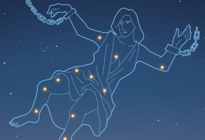 アンドロメダ座はプトレマイオスによって設定された星座です。古代エチオピアの王女アンドロメダ姫が、鎖に繋がれた様子をイメージした星座として広く知られています。 エチオピア王家が王ケフェウスと王妃カシオペヤによって統治されていたころ、とても美しく自尊心の強かったカシオペヤが「私の美しさには海の神の娘たちもかなわない」と発言しました。それを聞いた海の神ポセイドンは怒り心頭で海に住む大クジラをエチオピアに向かわせ津波を起こさせました。 この惨事を収めるため、カシオペヤとケフェウスは信託に従って娘のアンドロメダをいけにえに捧げます。その後、アンドロメダを助けに来たペルセウスとアンドロメダは結婚したと言われています。 【物語の出典】 全天星座百科新版 (株)河出書房新社(2011年2月) 星の文化史事典 (株)白水社(2019年12月)
