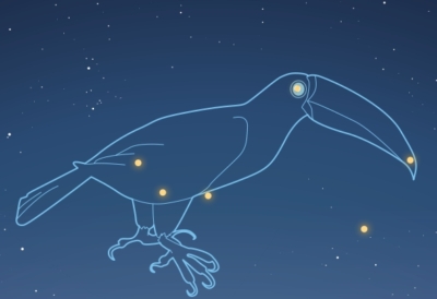 きょしちょう座は大航海時代に作られた南天の新星座の一つです。面積は295平方度で、肉眼星数は43個。 オランダのペーテル・ケイセルとフレデリック・ハウトマンの南半球での観測を元にペトルス・プランキウスが1598年に天球儀に描いて発表しました。 その後1603年にドイツのヨハン・バイエルが星図ウラノメトリアに記載し広まったとされています。 きょしちょう座は「巨嘴鳥座」と書き、くちばしが大きい南米の鳥を指しています。 【物語の出典】 全天星座百科 新版(株)河出書房新社(2011年2月) 星の文化史事典 (株)白水社(2019年12月)