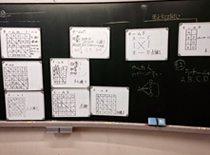 ④全体で学び合う。(ホワイトボードを黒板に考え方に分けて掲示させる。)