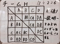 C チームDは,図と計算で考えました。1チームが3試合するから,全部で12。でも,それぞれが重なっているから2で割ります。