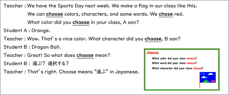 このように,やり取りをして生徒たちに意味を推測させます。