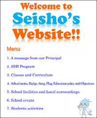 学校生活の様々な場面を使って生徒が英語で外部に発信することにチャレンジしています。例えば,本校のWebページには英語の学校紹介サイトがあるのですが,これは生徒がSAW(“Seisho à la carte Workshop”の略で,希望者生徒を対象にした本校独自の長期休業中の特別講座)の時間に作成したものです。タイ国の姉妹校の生徒や先生方はもちろん,海外の人たちに向けて発信したい青翔中学の情報や学校周辺の様子について生徒がアイディアを出し合い,自分たちの力で英語サイトを完成させました。