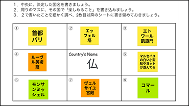 まずは旅行先を決定し,そこで何が楽しめるのかを考えていく。その際にグループでブレーンストーミングを行い,自分の考えを明確にしていく(資料4)。そこで出た意見を元に次の活動に移っていく。