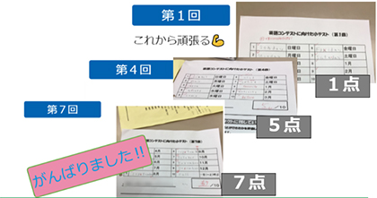 また,小テストの結果を撮影し,保存・蓄積し,生徒自身で学習の状況を把握しやすくすることで,生徒が学習を調整し,主体的に学習に取り組むことができるようにした。学習履歴(スタディ・ログ)から,生徒自身で対策を考え,取り組んでいる様子が見られた。また,教師も生徒の学習の成果がすぐに確認できるため,生徒が抱えている課題をいち早く察知し,授業改善に生かすことができた。