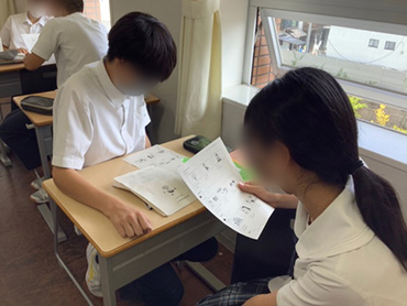 ラウンドシステムが生徒たちに浸透した2年次以降も大切にしているのは,まとまりのある英文を聞き取ってまず概要把握をさせることです。英語力が伸び悩む生徒に多いのが,全てを理解しなければならないと思うあまり,分からない単語や表現に出くわした途端にそれ以上の理解が進まなくなってしまうということです。実生活においてもスピーディーに要点を掴むことが求められるため,日頃から授業内でこの訓練を多く経験することが必要だと考えます。