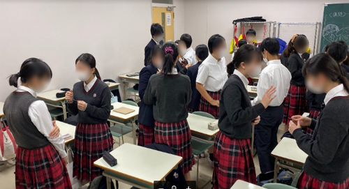 桃山学院は1884年に創立して以来,ミッションステートメントに基づく,時代に即した教育を目指してきた。桃山学院中学校は2008年に開設され,中高一貫の6年間で独自のカリキュラムと授業システムで難関大学に進学できる学力の伸長を図り,世界に飛躍する人材となるための知性を養うことを教育方針として掲げている。本校の生徒のうち,入学前に英語の塾に通っていた生徒の割合は全体の10分の1ほどであり,ほとんどの生徒が中学生になってから英語の学習を始めている。中学校教科書では啓林館の『BLUE SKY English Course』を採用しており,生徒たちの英文法知識における段階的な定着に非常に役立っている。この授業実践報告では現在中学3年生の生徒たちが1年生の頃から実践している活動の報告をさせていただきたい。