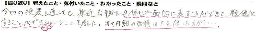 に3.14を代入することから)」が今の6章にも生かされていることが実感できたようだ。