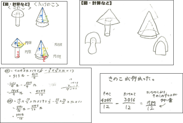 今回与えた図では「円錐・円柱」が用いられているが,学習が進んでいくと「半球」や,クッキーの部分も「円柱と半球を組み合わせたもの」として考えることができる。学習が進むことで,「もっと正確に求めたい」「本当にそれでいいか」と数学の世界と日常の世界を行ったり来たりしながら取り組めるとなお正確に比較できるのではないか。