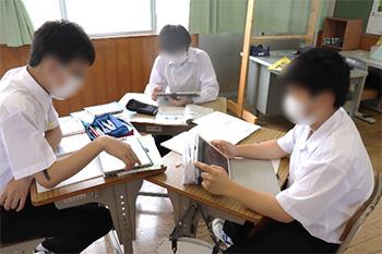 本校は,日本で最も細長い自然豊かな佐田岬半島の中央付近に位置する中学校である。全校生徒20名余りの小規模校で,穏やかで真面目な性格の生徒が多い。本研究対象の学年(6名)は,1年生の頃から切磋琢磨し合いながら様々な活動に意欲的に取り組むことができていた。どの教科の学習においても,積極的に挙手をして意見を発表したり,熱心に問題解決に取り組んだりする姿が,授業中などで見られた。