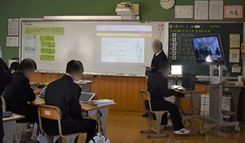小規模校の生徒が多様な考えに触れる機会として,とても有効な授業形態であるが,準備や打合せ等に多くの時間が必要になる。両校の教員が,効率よく授業の準備ができる方法を研究していくことが課題である。