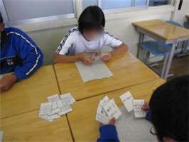 残りのカードが少なくなると,次はどの読み札が来るか予想するようになり,取る準備をするようになった。優勝者は,神経衰弱と同じく,優勝者決定カード(文章カード)を利用して決めた。