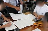 生徒が集めたデータをまとめやすいように,表を利用した。