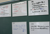 [4] 黒板に張り付けたホワイトボードを使って説明させる。 ・他者の説明を聞いた後に,自分のデータ上で確認する。 |