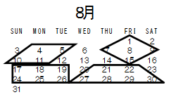 カレンダーは,どの部分を2×2の正方形で囲んでも,対角にある数の積の差は7になる。