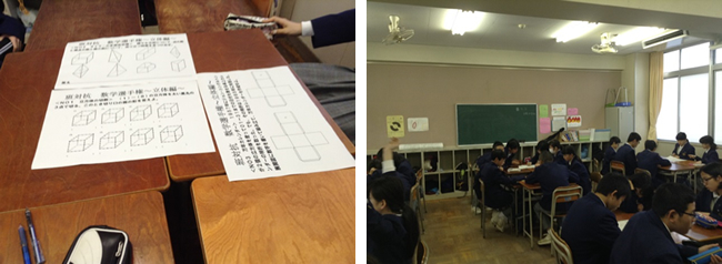 以上の3つの課題を,班対抗の数学選手権と題して,点数を決めて班で勝負させた。空間図形の最後の授業として行ったため,かなり白熱したものとなった。このように知的好奇心を刺激できる取り組みを用いて,数学へのモチベーションの向上を定期的に図っていきたいものである。