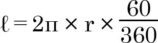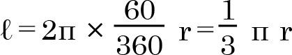 〇弧の長さを求める式と面積を求める式を確認する。ただし,弧の長さと面積を求めることから, |