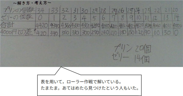 答え プリン20個,ゼリー14個 |