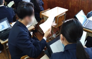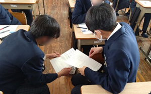 【資料7】資料を見て話し合う生徒の様子