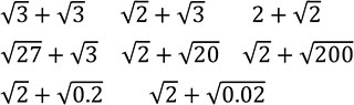 既習の数や文字式の計算の方法と関連付けて,平方根を含む式の加法や減法の方法を見いだす。